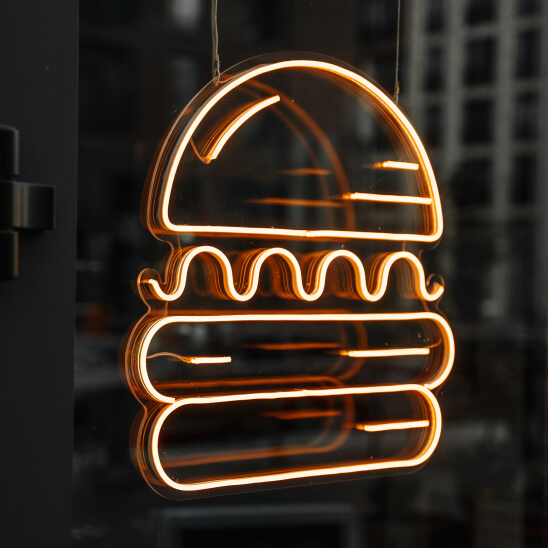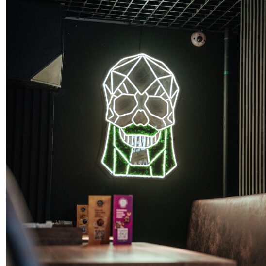 Плюсы: стеклянный неон дает эффект винтажности и отлично сочетается с различными стилями интерьеров.