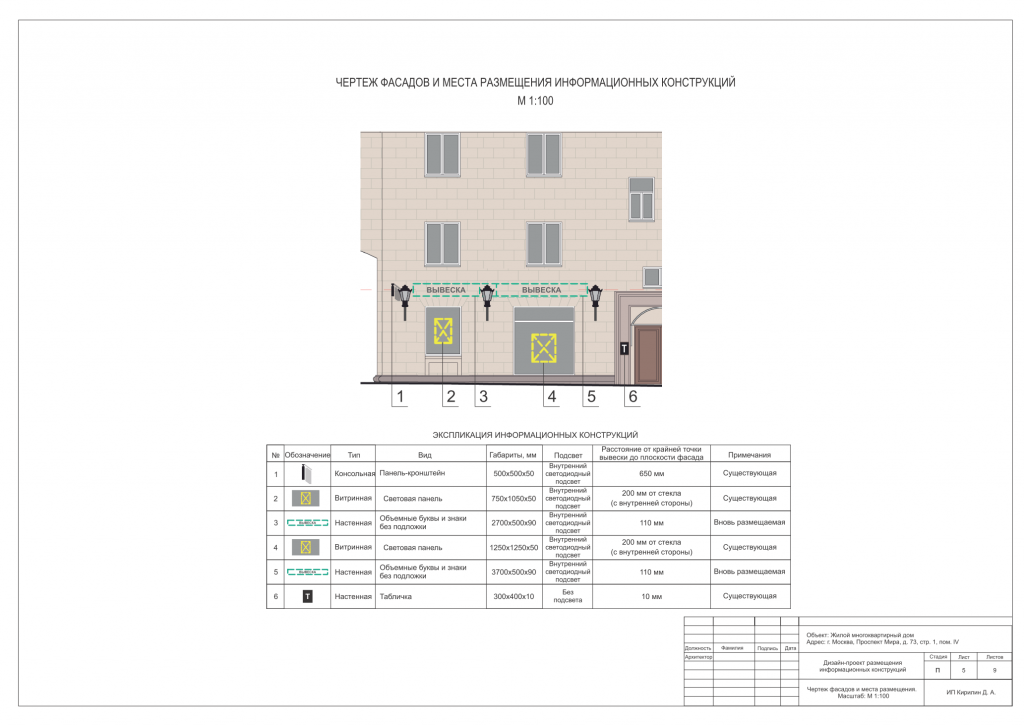Пример нашего проекта для согласования с городом вывесок на объекте культурного наследия в Москве: