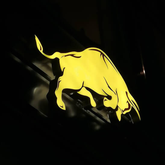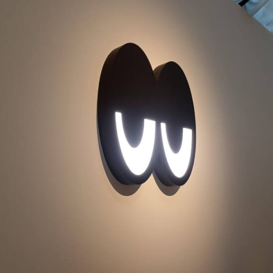 Объёмный световой короб с фигурным резом бывает практически любой формы. Фигурный короб может устанавливаться в качестве элемента вывески или лицевой надписи целиком. Часто такой прием используют в целях экономии, но иногда такое решение является задумкой дизайнера.